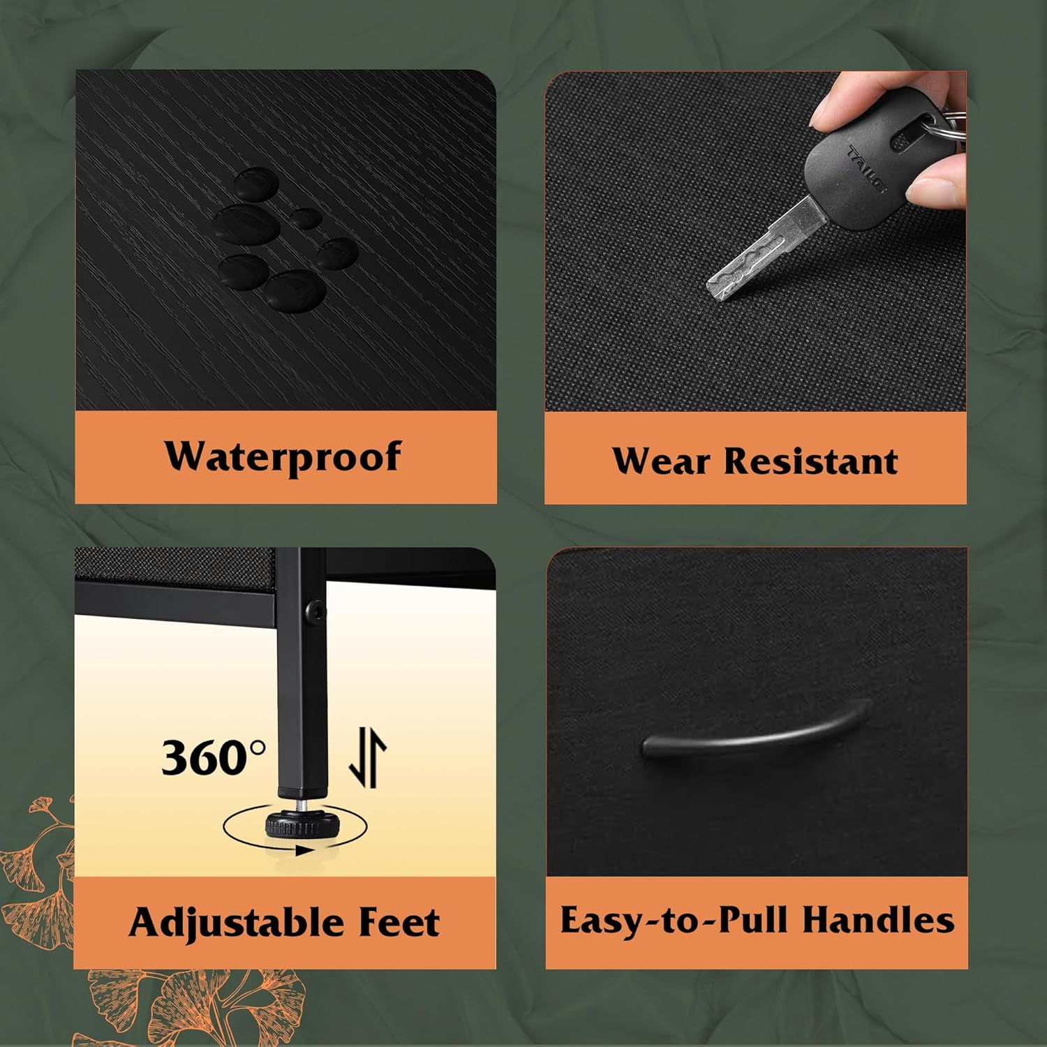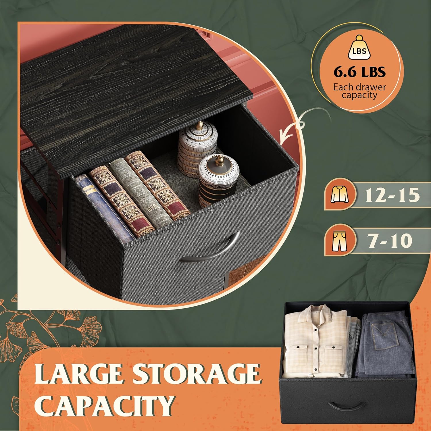 WLIVE Dresser with 4 Drawers, Fabric Storage Tower, Organizer Unit for Bedroom, Hallway, Entryway, Closets, Sturdy Steel Frame, Wood Top, Easy Pull Handle, Charcoal Black